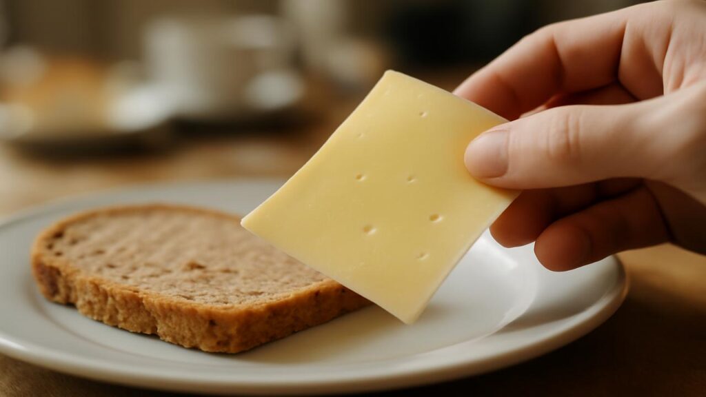 An diesem Morgen aber liegt da noch etwas auf dem Tisch, fast schon verlegen an den Rand geschoben: eine einfache, eckige Packung Supermarkt-Käse. Keine Feinkost, kein Bio-Siegel, kein handgeschöpfter Markenmythos. Nur eine Käsescheibe, die dich fast wortlos anschaut. Und genau die könnte dafür sorgen, dass dein Blutzucker heute nicht Achterbahn fährt, sondern eher gemütlich über eine Landstraße rollt.