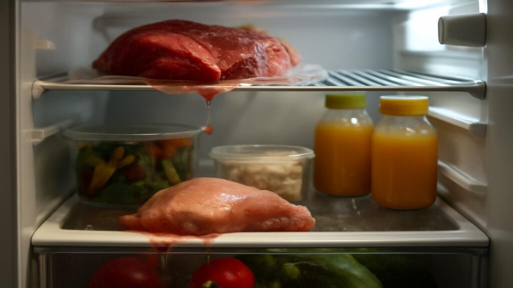 Kann ich Lebensmittel essen, die unter rohem Fleisch gelagert wurden?