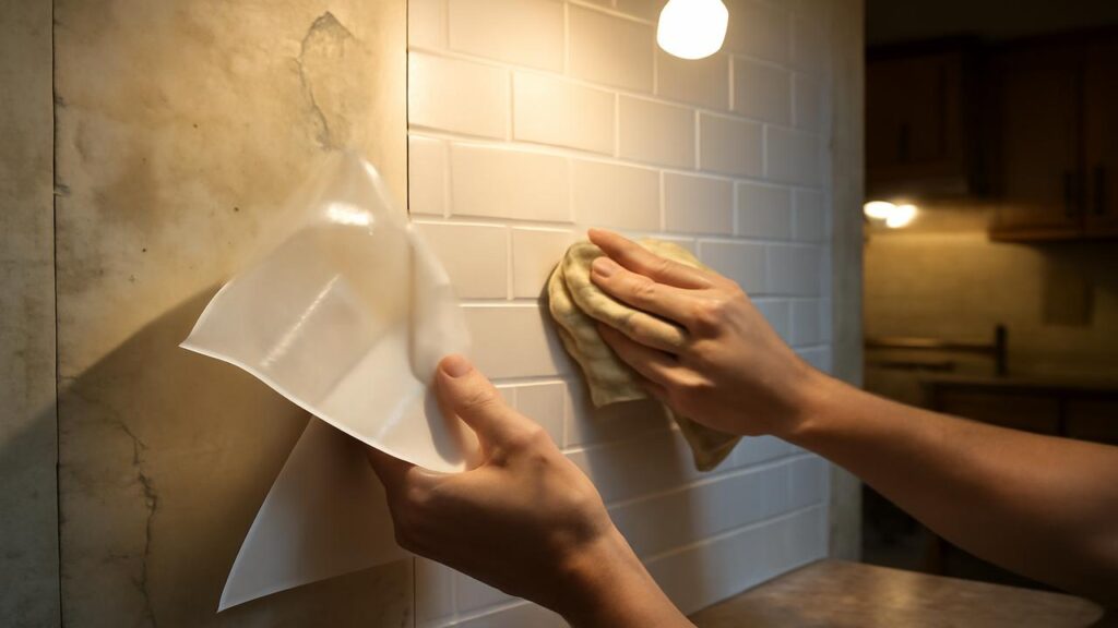 Du reinigst die Fliesen. Gründlicher als je zuvor. Fett, Staub, alte Spritzer – alles muss weg, damit die Folien Halt finden. Und dann beginnst du mit der ersten Ecke. Du ziehst die Trägerfolie langsam ab, legst die Kante millimetergenau an die Fuge und streichst mit einem Tuch oder einer alten EC-Karte vorsichtig von innen nach außen. Blasen verschwinden, das Plastik schmiegt sich an die Keramik, Fugenkanten verschwinden unter der neuen Oberfläche. Im Halblicht sieht es plötzlich so aus, als wäre hier eine komplett neue Wand eingebaut worden.